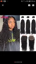 Name: Lemoda-mechones de ondas profundas con cierre, mechones rizados de 30 pulgadas con Frontal Remy brasileño, 3 o 4 mechones, extensión de cabello humano ondulado